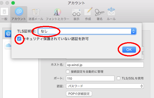 セキュリティで保護されていない認証を許可:チェックを入れます。